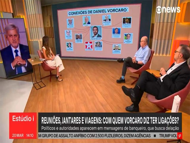 O gráfico da Globo News colocou Daniel Vorcaro, o dono do Banco Master, ao centro e, nas laterais, imagens e informações sobre políticos e empresários ligados à extrema direita e à esquerda. Uma foto de Lula e a estrela do PT em destaque tentavam ligar o presidente e seu partido aos crimes financeiros do banco liquidado pelo Banco Central em novembro do ano passado.